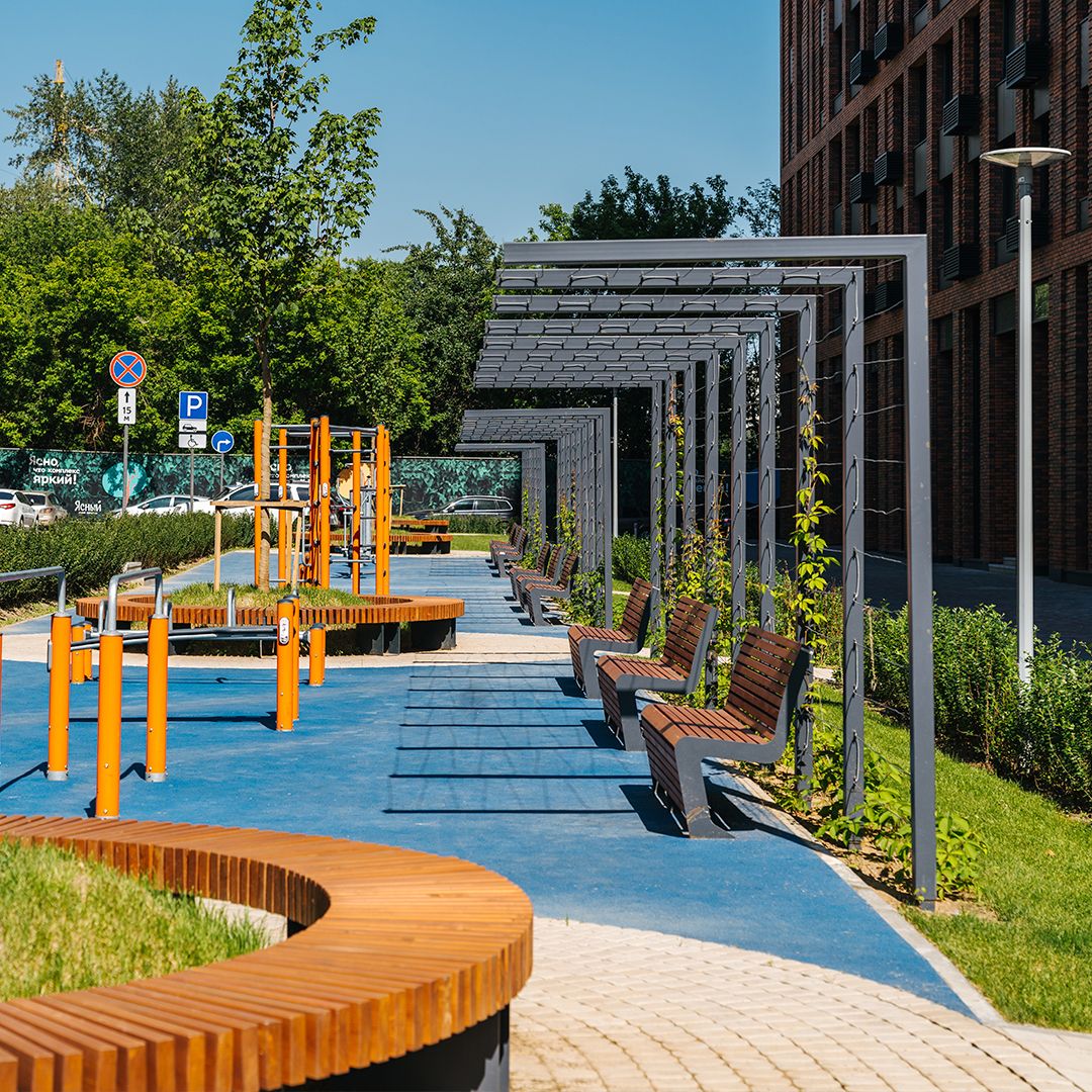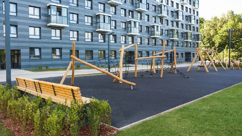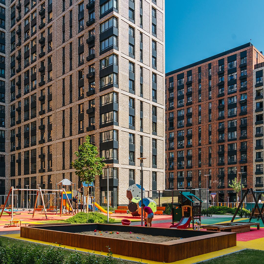 По проекту застройщика, безопасные дворы закрытые для въезда транспорта, будут оборудованы детскими игровыми и спортивными площадками. В жилом комплексе уже работает детский сад с яслями, рассчитанный на 111 детей. Также на территории комплекса находится школа на 275 учеников с пристройкой и просторным спортзалом.