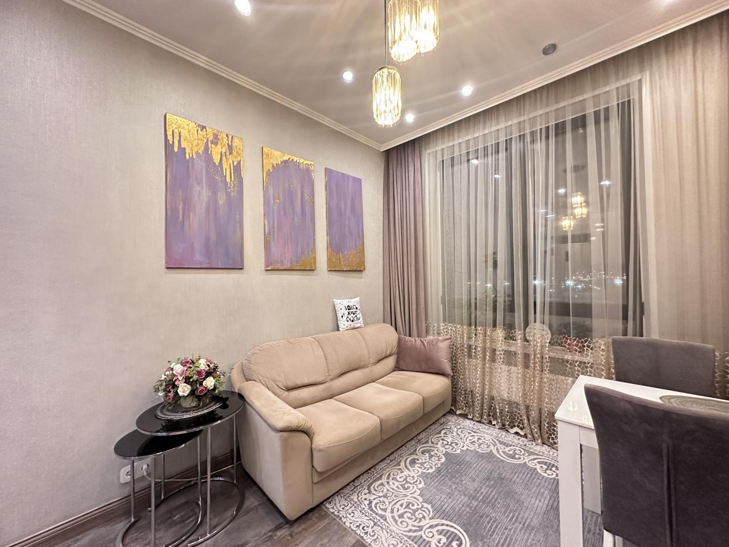 - Общая площадь квартиры составляет 38,1 м², и состоит из просторной кухни-гостиной площадью 14 м² и комнаты - 18 м².